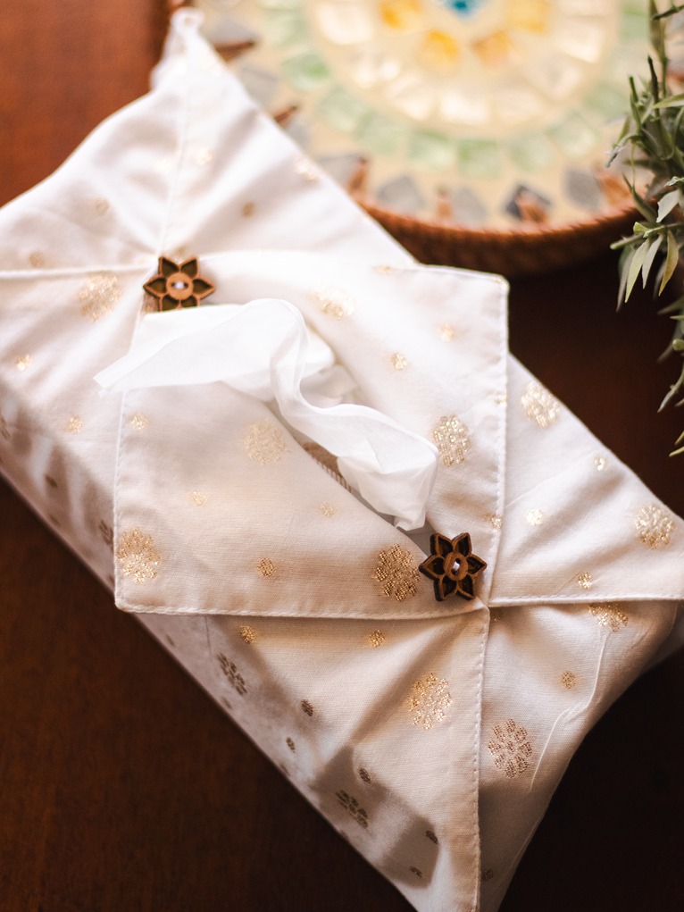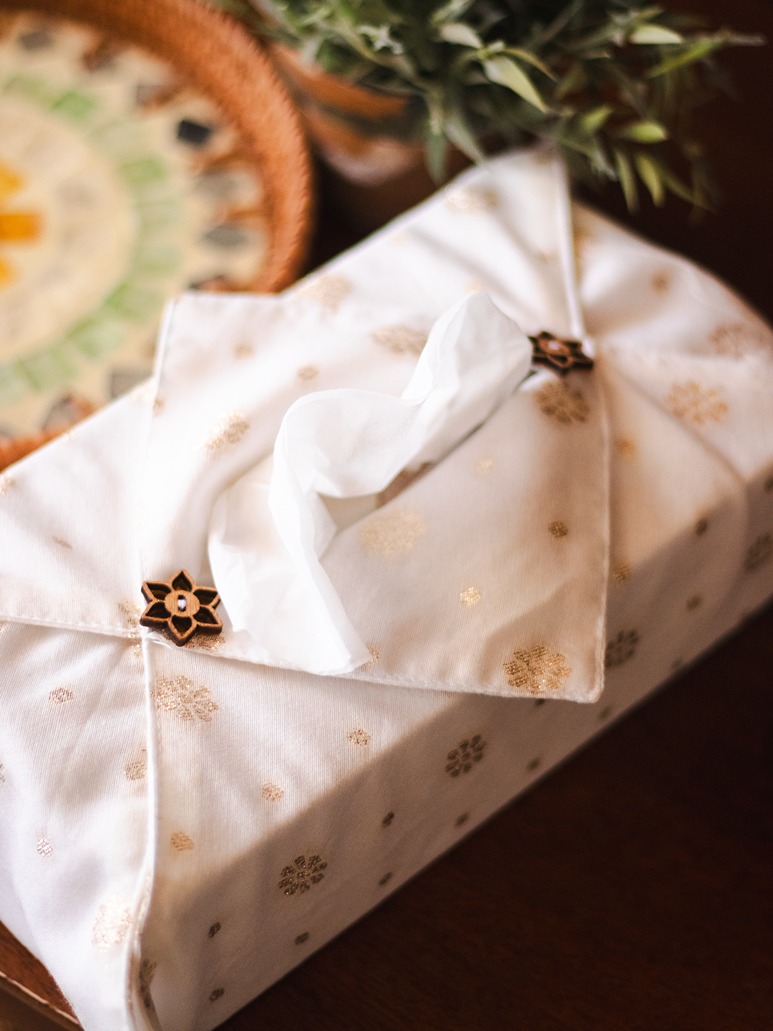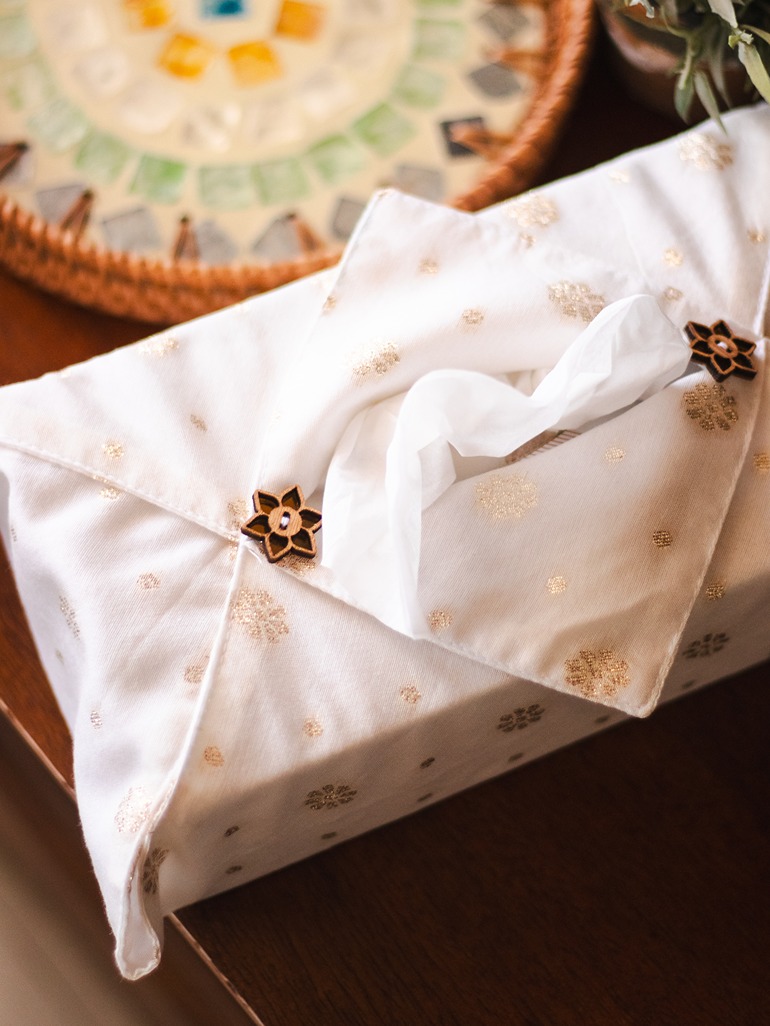 This fabric tissue cover can be put onto any standard sized (100 ply) tissue box directly.