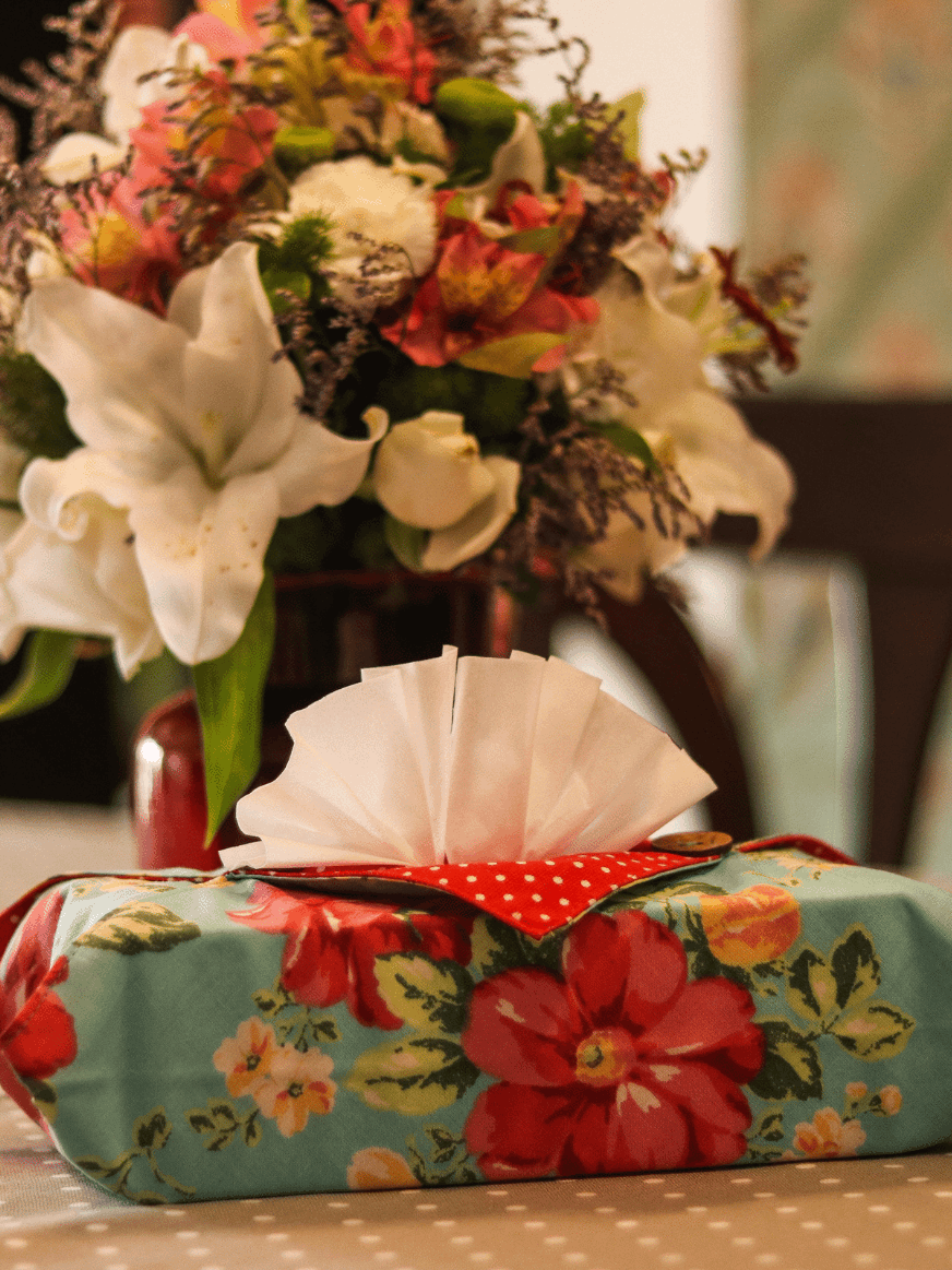 Tissue Box Cover - Floral with red polka themed (Single Unit)