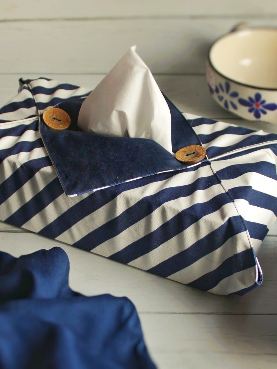 Tissue Box Cover - Navy blue with awning stripes (Single Unit)