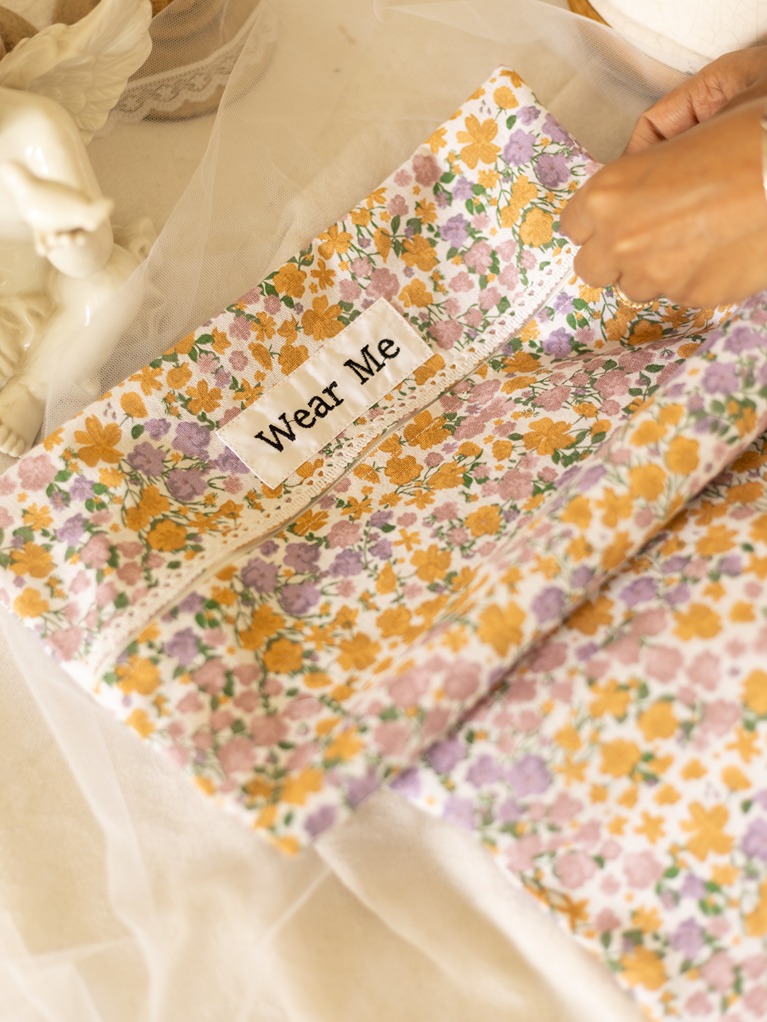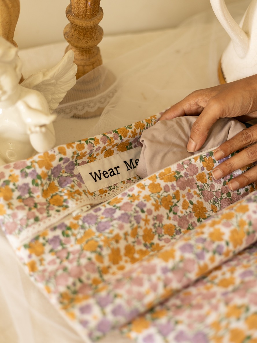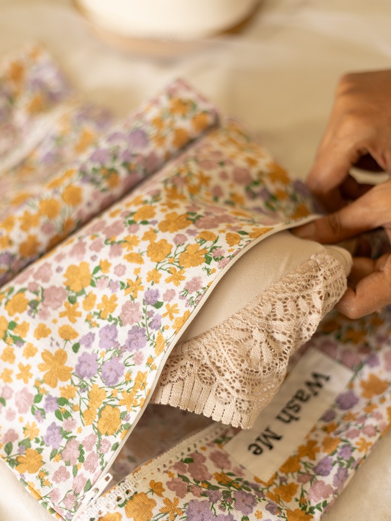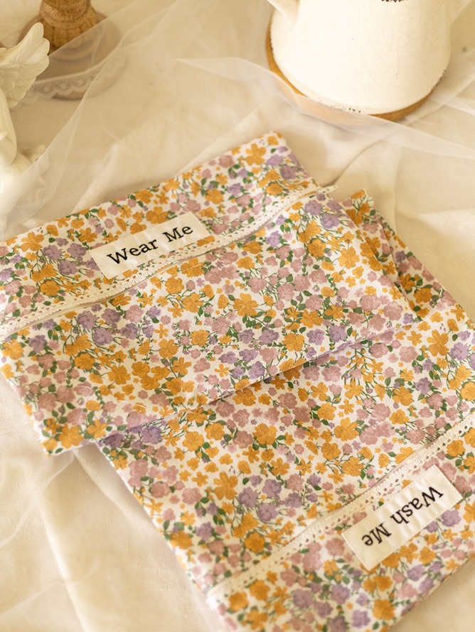 Wear Me & Wash Me - Lingerie/Organizer Pouches - Purple with mustard flowers with lace