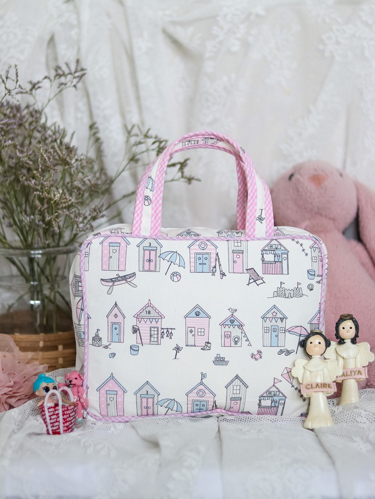 Material: Cotton Fabric, nylon lining, synthetic net for pouches and batting.